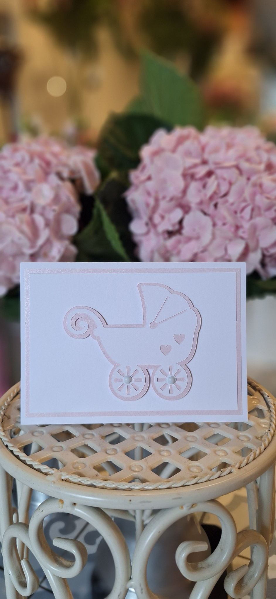 Armas käsitöökaart, millesse kirjutada õnnesoovid väikese tüdruku sünni puhul.
