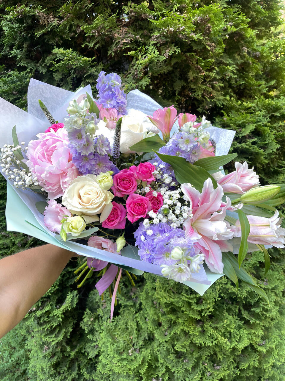 Lillekimp, millest leiate rõõmsates toonides imeilusaid lillesorte nagu kukekannused, roosid, liiliad, pojengid ja palju muud 🎀*Pildil on kujutatud L-suuruses kimpu Õnnitluskaardid leiate ''Kingituste'' kategooria alt.