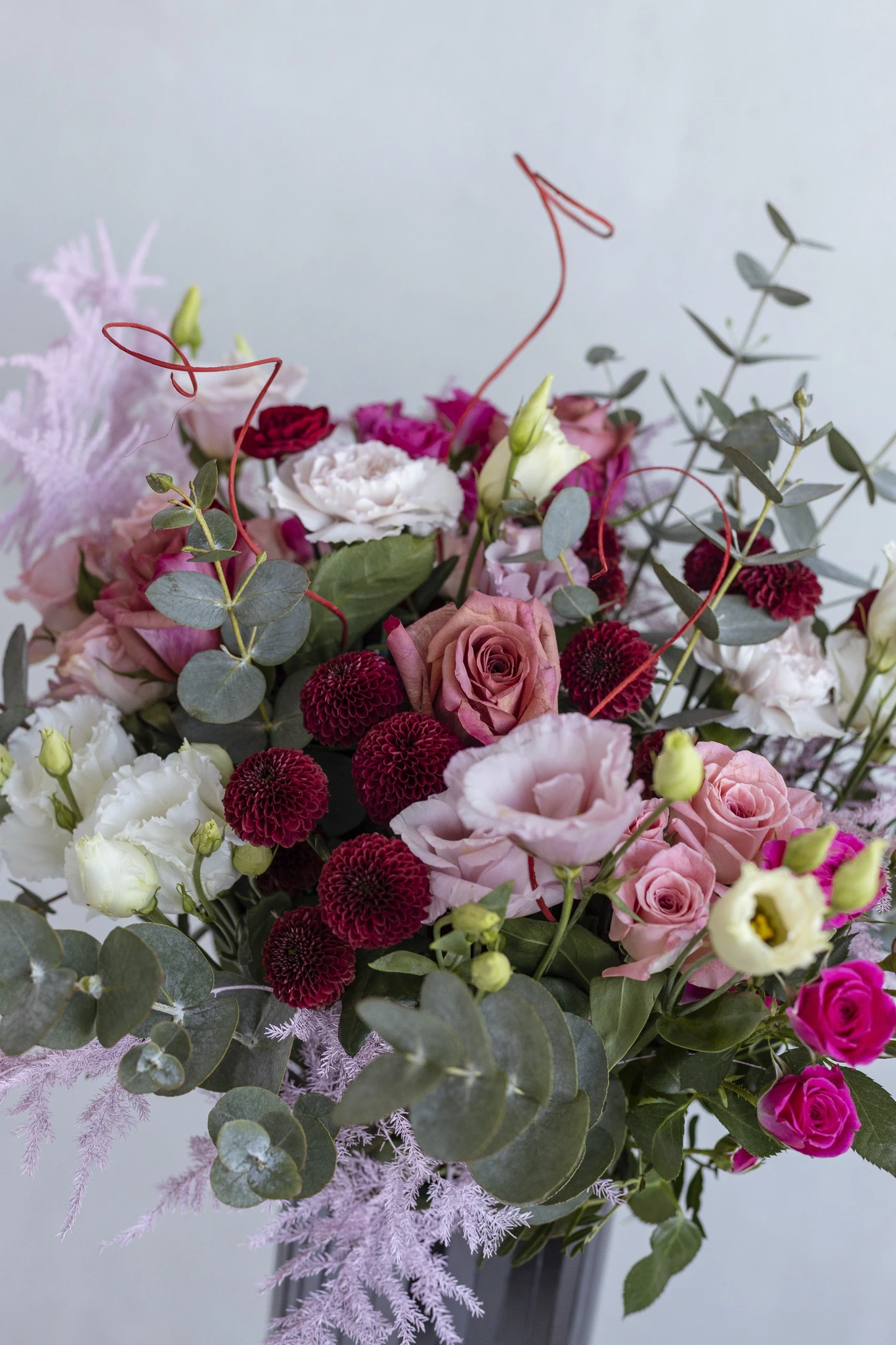 Kõige kuumemad tunded ühes lillekimbus! Imekaunis kooslus sügavpunastest, roosadest ja heledatest lilledest, mis jätavad unustamatud mälestused.