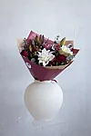 Tumedam lillekimp sügavpunastes toonides lilledest koos suursuguse topeltliiliaga.