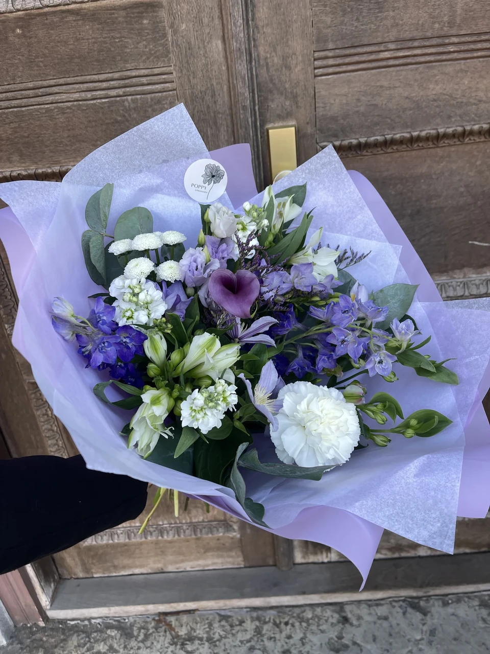 Lillekimp, millest leiad erinevaid lillades ja heledates toonides õisi koos erinevate roheliste okstega.Saada kimp kiirelt ja mugavalt kulleriga või tule sellele ise stuudiosse järgi!